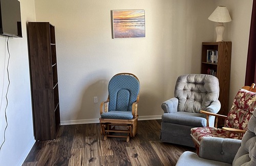Kitchen is fully stocked for your convenience. Enjoy the use of pots/pans, Foreman grill, Keurig, blender, dishes, silverware, and cooking utensils.