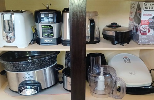 Appliances: Full Size Refrigerator w/Freezer Combo, Stove, Dishwasher, Microwave, Coffee Maker, Toaster, Blender, Hot Water Kettle, Crock Pot, Waffle Maker, George Forman Grill, Hand held Mixer and more.