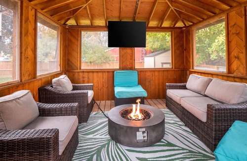 The home includes a large backyard, bbq, Fire pit, gazebo with fireplace/TV & A place for the kids to be entertained Going to a wedding -A great place to get ready, Parking for 4 in the driveway, and a short walk downtown to both venues
