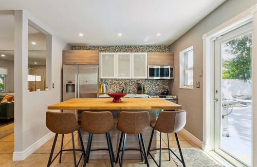 Tucked away in a quiet, safe neighborhood, this beautiful 3 bed and 2 bath home has it all. Fully stocked and updated kitchen with stainless steel appliances, breakfast bar and dining for six. The large outdoor patio is equipped with a gas grill with plenty of loungers and seating by the pool. Centrally located, we're just 5 minutes to Wilton Drive, 10 minutes to the beach and downtown Fort Lauderdale/Las Olas Blvd and near many of the area's top attractions. Welcome to paradise!