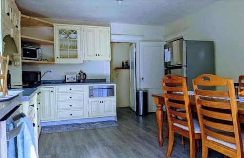 A fully restored, newly listed home with five bedrooms, each with a private bathroom. Large, fully furnished kitchen and pantry/laundry room. Great set up for a family or group of friends. Enjoy all that the mountains have to offer, or just relax on the front porch and enjoy rural New Hampshire. Keep it simple at this peaceful and centrally-located place.