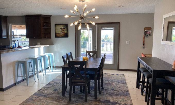 Centrally located. Newly remodeled. Cozy and clean. Large back deck with beautiful views. This was our home for 13 years. We love it so much and are so excited to host your group. Large bedrooms, extra amenities. ****Pool is open seasonally! Weather permitting, we usually have it open the end of April/beginning of May. ****