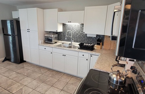 Newly remodeled home. Large eat in fully equipped kitchen. All 3 bedrooms have full size beds.