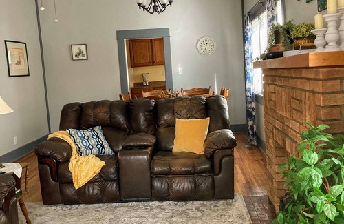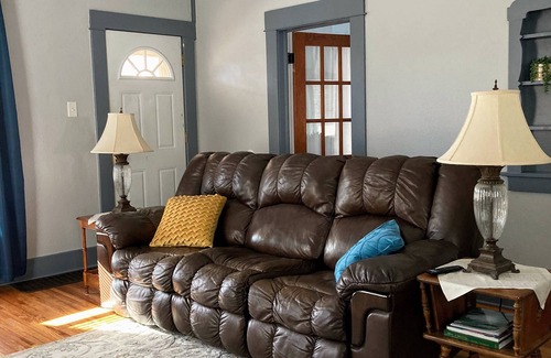 This house is fully equipped with 3 bedrooms, two full bathrooms, laundry, kitchen, lovely front porch, and comfortable living room and dining room. The house has 10 ft. ceilings on the main floor, with the wide trim and lovely hardwood adding character and beauty. The 3rd bedroom is on the second floor so please keep this in mind when you rent this house and need the 3rd bedroom.