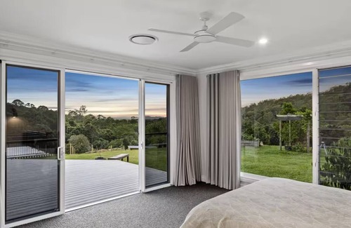 Escape to serenity at this idyllic family retreat, set on 11 lush acres at the foot of the hinterland, only 10 minutes from Montville. Wake up to breathtaking views over treetops, start your day lounging on the hanging daybed as the sun rises. Collect fresh eggs for a truly farm-to-table breakfast. This charming home boasts 4 spacious bedrooms, 2 bathrooms, a sleek modern kitchen that flows into the open-plan living/dining area, plus a cosy media room and huge pool. Well-behaved dogs are welcome