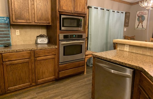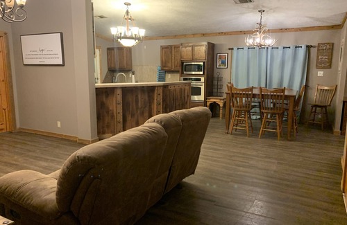 Our home sits right next to Grace Ranch and is great for a cozy getaway to the country! It boasts an extra large front porch, a great open floor plan with plenty of room to gather, 4 bedrooms, and a super fun tree house for the kids to play in. Sit on the front porch and drink your morning coffee as you take in the country views as well as getting to see the horses, cows, and goats that may pass by. Other perks are that we are less than 10 minutes to town and have some of the most beautiful sunsets!! For added fun contact Grace Ranch, at graceranch.net, and book a ranch ride. All bookings with Grace Ranch are made separately and are subject to availability. Make sure to book at least a week in advance.