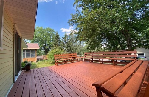 Charming 4 BR, 2 bath sleeps 9 max. Price is for 6 person, $20 extra per person per night. Enjoy the fully equipped kitchen, and two 70 inch smart TVs. Main floor features a huge living room, kitchen, dining, 3 BR & a full bath. Two additional twin beds and another huge family room in the basement. Hop on the trails at amazing Hansen Park right down the road. Lots of restaurants, shopping, fitness center within a few miles. Whether you are fishing, biking, riding, hiking, or just trying to relax, this home is well-equipped.