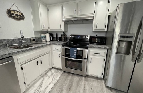 Relax and enjoy in this freshly renovated, calm and stylish 2 bed and 2 bath home. It’s been furnished and equipped with New furniture and appliances for your needs. There are smart TVs in every room with high speed WIFI. There’s a private master bedroom with King bed, walk in closet and walk in shower. Another guest room is furnished with queen bed. Pull out sofa with 65in TV in the living room to accommodate 6 people total. We’re located in quiet and friendly neighborhood in Carmichael.