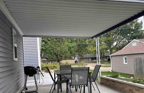 Your family will be close to everything with this centrally-located home. 5 miles from TBK sports complex (Bett Plex), a few blocks from the bike path. I-74 within minutes. 2 private bedrooms upstairs and a 3rd bedroom in the basement. 2 living areas and 2 bathrooms. Workspace in the basement and fully stocked kitchen. Outside has a covered dining area.