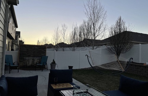 With your family and friends light the gas surround fire pit with comfortable couch seating and read a book in the yard hammock (weather permitting) after a long day exploring Estes Park, Loveland, Boulder, Longmont or Fort Collins. 1 Hour drive to Denver. 3 parking areas on the front driveway. Note: 3 steps to enter from the front door. Event parties are not allowed. Quiet hours 10pm-7am. Check in at 4PM, Checkout is 10:00AM. (Early or late checkout options may be available)