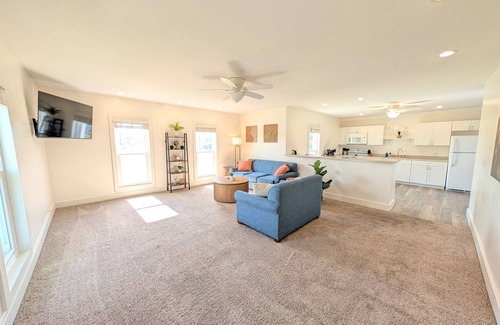 Escape to this charming full-duplex rental in Fremont, Ohio—located just across the street from Memory Marina, the Sandusky River, and Jimmy Bukkett’s, a local favorite for food, drinks, and live music. By booking both units together, your group will enjoy private access to the entire property, including the spacious yard with a fire pit, grill, and outdoor seating.