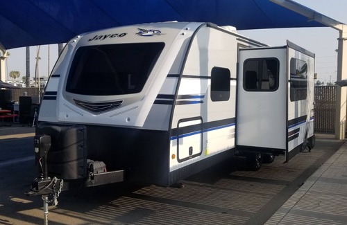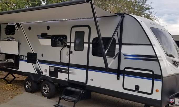 Like adventures? Have a short stay in this non-smoking new 2018 White Hawk ultra-light travel trailer with outdoor kitchen and extra storage. Relax with your family and friends at this safe, private, and peaceful mobile RV trailer park.
