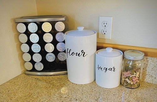 The studio apartment layout is an open concept with a large king bed, a large sectional, full bath, dining table for 6 and a large kitchen. The added amenities of a 45” TV with access to Netflix / Hulu / Amazon, etc. We also have extremely high speed WIFI which is wonderful for all your at home work needs. In the kitchen you will find a keurig to get your trip started off right. Have a coffee on the outdoor porch to start your day! The kitchen is also equipped with a great assortment of spices, flour and sugar. We also have many pots and pans for all your cooking needs.