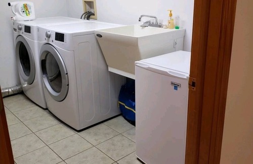 Private side entrance at ground level featuring large windows with natural light, private bathroom with toiletries, laundry room with washer/dryer, private family room with couch, TV with Hulu, wireless, microwave, coffee maker, bottled water, and a mini fridge. You have the entire floor to yourself, as we live upstairs. House is located in a quiet country subdivision. Deer, birds and other wildlife are daily visitors.