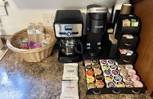 - Free coffee (including decaf and tea) and snacks to get you going on your mornings