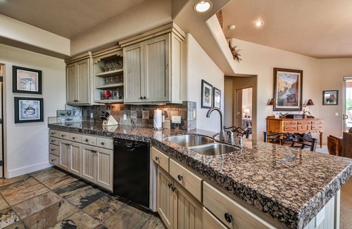 Our home is professionally decorated with an attached two car garage. All the conveniences of home including free secure wi-fi, upgraded kitchen with granite counter tops and slate floors. The kitchen is complete with all the dishes, cookware and spices you will need to prepare delicious meals. There is a Keurig coffee maker as well as a drip style coffee maker for your convenience.