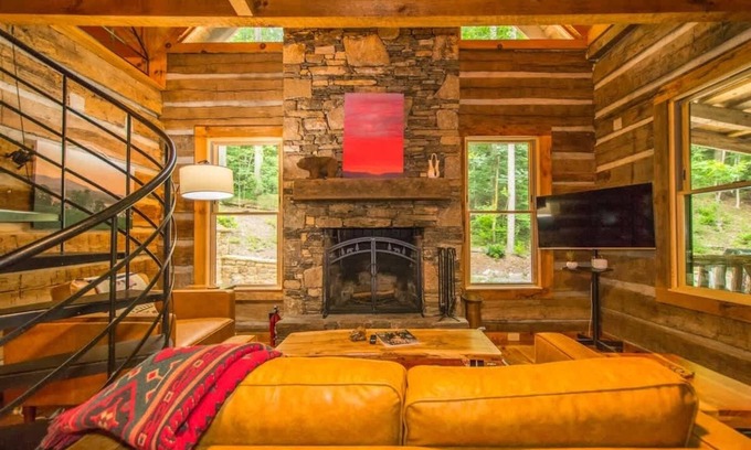 At this funky 1BDR cabin guests will enjoy incredible spaces, indoors and out. Shoot a game of pool in the loft and relax together on the patio while enjoying an epic outdoor fireplace. Venture out to explore waterfalls, local hiking, and more—free daily attraction tickets included. A private, well-equipped base just 5 minutes to downtown Saluda.