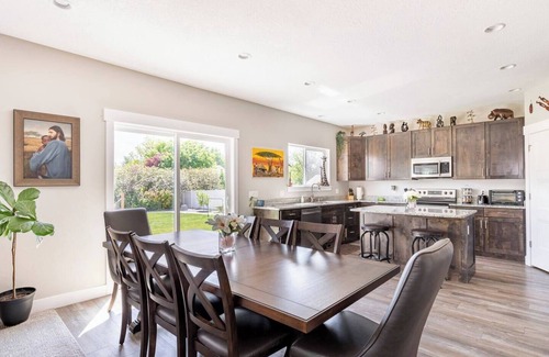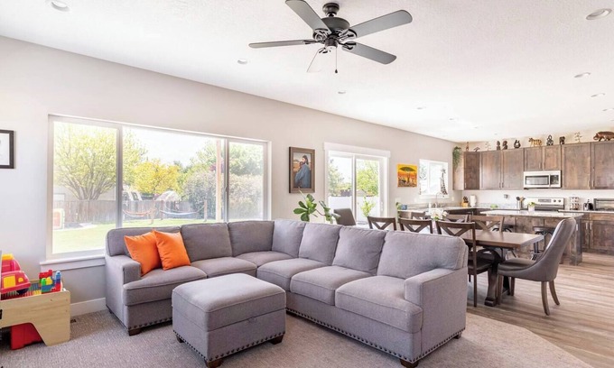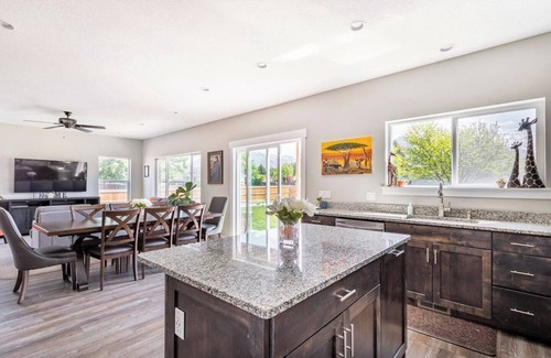 We have 5 kids ourselves and live in this house when we aren't traveling. We designed our home as a place to be together and make memories. The bedrooms and laundry are upstairs and away from the group setting. The kids playroom is downstairs, which allows the adults and kids to have their own space, while still being able to hear each other. Lastly, the spacious backyard offers many activities and sitting spaces. We hope our home will give you and your group the perfect setting to make memories and enjoy time together!
