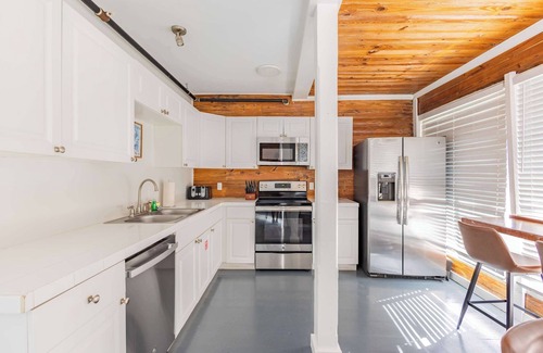 The thoughtful design and modern amenities of Commodore's Compound make it a remarkable venue for your wedding festivities. Each level features multiple bedrooms with en suite bathrooms, ensuring privacy and convenience for your guests. The fully equipped kitchen encourages delightful home-cooked meals, while the inviting living spaces—complete with flat-screen TVs and ample seating—set the stage for unforgettable gatherings. Step outside to find a serene back patio boasting a hot tub, perfect for relaxation after the celebrations, and a large balcony where you can soak in the stunning surroundings with morning coffee or evening cocktails.