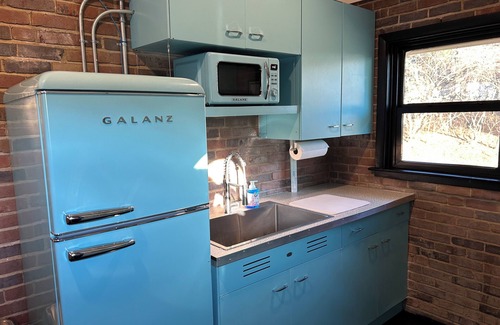 The space has a center living room with sofa and 75 inch TV, Queen size bed with Nectar mattress Separated by walls on one side is a Retro Kitchenette with fridge 2 coffee makers microwave , hot pot toaster, on other side is a full bathroom with walk in shower. Guests have full private access to the guesthouse Guests may use the pickleball court upon request( paddles and balls available) There is a private drive to park a car with a walkway leading directly to the guesthouse in the back of the property