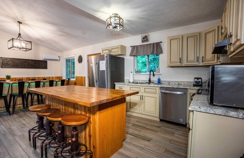 Conveniently located just five minutes from local shops and restaurants, the Epic Poconos Farmhouse is a short drive away from the exciting activities at Lake Wallenpaupack, making it easy for your guests to explore the area. Whether your group prefers skiing, hiking, or simply enjoying the serene lakeside atmosphere, this accommodation serves as an excellent home base. Access is hassle-free with a smart lock system that allows check-in at any time, ensuring you and your guests can focus on creating lasting memories during your wedding retreat in White Mills, Pennsylvania.