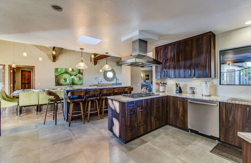 Welcome to Sedona HyViews Amazing Red Rock View- Patio+Hot Tub Large Groups-Enjoy Bar & Games!, an exceptional property ideally suited for weddings and large gatherings. Nestled in the heart of Uptown Sedona, this spacious two-level home offers a stunning backdrop of red rock views, providing an enchanting locale for your special day. With its capacity to accommodate up to 19 guests, you’ll find it perfect for hosting intimate pre-wedding celebrations or post-wedding brunches, allowing family and friends to enjoy the joyous occasion together.