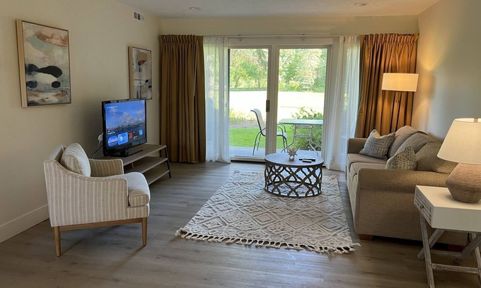 Relax in this bright, modern condo overlooking the Wolverine Golf Course—just 15 mins from downtown Traverse City and 5 mins from the Great Lakes Equestrian Festival, East Bay beaches, Meijer, and Grand Traverse Resort. Enjoy morning coffee on the patio with fairway views, explore local wineries, or unwind after a day at the showgrounds. Perfect for summer getaways, equestrian guests, and golf lovers alike!