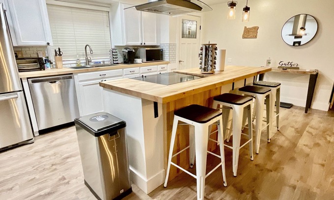 Channel your inner chef in our fully stocked kitchen, complete with essential pots & pans, spices, and a baking oven. For coffee lovers, we have a Keurig, coffee grinder, and pour-over setup for that perfect brew. Gather around the dining table that comfortably seats up to 8 for memorable meals and laughter.