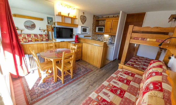 Equipped studio at the foot of the slopes, Les Menuires is located in Les Menuires. Equipped studio at the foot of the slopes, Les Menuires provides accommodation, featuring Laundry, TV, Fireplace/Heating, among other amenities. This Apartment features Laundry, TV, Fireplace/Heating, to make your stay a comfortable one.