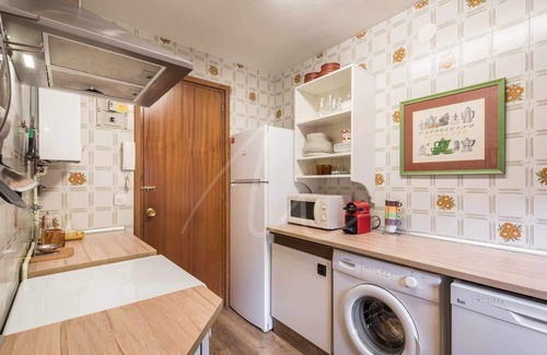 The apartment ha a maximum has a maximum capacity of 6 people, it offers 3 bedrooms and 2 bathrooms. A master bedroom suite with a full French-style bathroom, a bedroom with two twin beds and a third room with a trundle bed, independent kitchen, living-dining room with access to a balcony and a full bathroom. There is no parking but there always to park spaces in the area. It has Wi-Fi. The fireplace cannot be used.