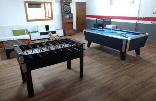 Providing a garden, Escapada Delux features accommodations in Ossa de Montiel. This property offers access to a patio, a pool table, free private parking, and free Wifi. The country house provides an outdoor swimming pool with a fence, as well as a hot tub and a tour desk. With direct access to a balcony with garden views, the spacious country house consists of 5 bedrooms. Offering a terrace with mountain views, this country house also has a cable flat-screen TV, a well-equipped kitchen with a dishwasher, an oven, and a microwave, as well as 4 bathrooms with a walk-in shower and a hair dryer. There's also a seating area and a fireplace. Guests can make the most of the warm weather with the property's barbecue facilities. For guests with children, the country house offers kids pool, an indoor play area, and outdoor play equipment. Guests can also warm up near the outdoor fireplace after a day of cycling. Lagunas de Ruidera Natural Park is 7.1 miles from Escapada Delux.