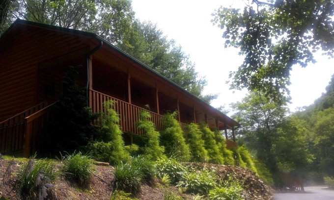 This Cabin is one of a kind riverfront getaway. Relax on the Large comfortable porch, overlooking a broad mountain river. It sleeps 2. 4 upon request Unfortunately we no longer allow any dogs.