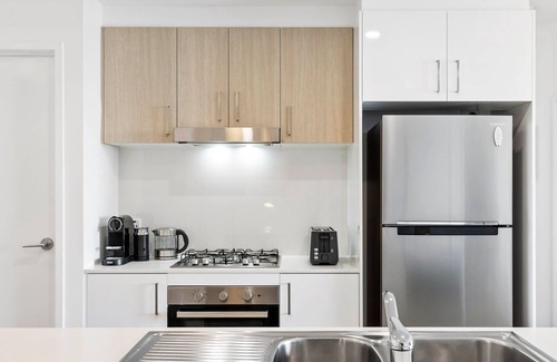 Guests will love cooking and entertaining in the galley style kitchen, featuring stone benchtops, high end appliances including dishwasher and coffee pod machine and plenty of bench and storage space.