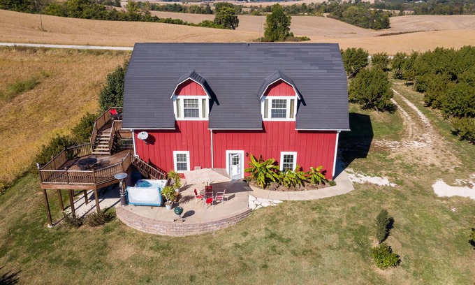 The home was designed to look like an old time barn. It was completed in 2008 with many amazing details that make it truly unique! It provides awesome views of rolling farmland and the cliffs of Pierre Marquette State Park to the north and longtime family farmsteads to the south.