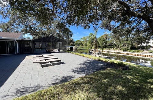 Do you want a break from life? Come stay at our Phillippi Creek Retreat! Newly furnished 2 bedroom, 3 bathroom pool home on the creek. Enjoy lounging by the pool or watch the fish jump from the dock. Centrally located only 10 minutes to the white sands of Siesta Beach, or to Downtown in a beautiful quiet neighborhood. One room has a King size bed and ensuite bathroom. The second room has two Queen size beds and a Jack and Jill bathroom. All newly renovated. Large open concept living area and heated saltwater pool. grill, gas fire pit, beach chairs, SUP’s, every detail covered for a spectacular get away.