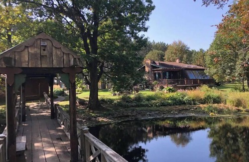 Our space is private and nestled among towering pine trees on a private pond with an accessible island via a covered custom bridge. We are gardeners so have built seasonal flower gardens and Japanese style gardens over the years. We love sharing our little piece of heaven to others. Each season has something special to share. Our home has been fully remodeled for guests to enjoy. We have ample safe space for your furry babies to roam and explore too!