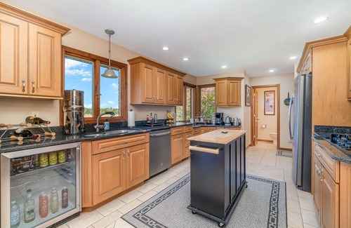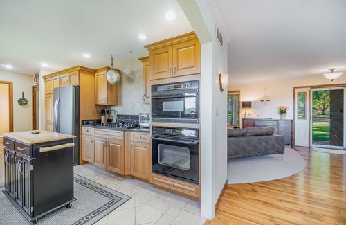 Escape to a country oasis to relax or entertain. Enjoy the quiet surroundings, spacious abode, multiple entertainment areas including pool table, full wet bar, dart board, putting mat, and game table with table games or play bocce, cornhole or cozy up to the warmth of a fire in in the large backyard. 2 level home, 3 bedrooms, 2 king beds and one queen, 2.5 bathrooms w/ whirlpool tub, entertainment/bar/exercise area downstairs and walkout patio; kitchen and bedrooms upstairs, with outdoor deck.