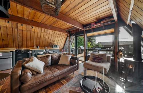 Our cozy cabin is a remodeled 1969 Midcentury Modern A frame. It is small and intimate, with lots of rustic charm and luxury linens and comforts. We have outfitted it with all the modern amenities you could ask for.