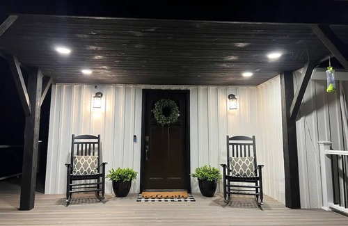 Relax on the front porch adorned with idyllic rocking chairs, perfect for watching stunning sunsets or simply unwinding.