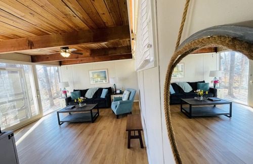 Escape to our cozy cottages nestled in Tanglewood Park's peaceful woods. Cottage #2 features 3 cozy bedrooms, 1 bathroom, a generous living room. Relax with stunning lake views and a variety of activities. Go fishing, boating, or swim in our seasonal pool. Enjoy golf or Softgolf, horseback rides, and BMX Racing. Don't forget your furry companion; we're pet-friendly! Let them roam freely at Tanglewoof, our dedicated dog park. Unwind in nature's beauty and make unforgettable memories.