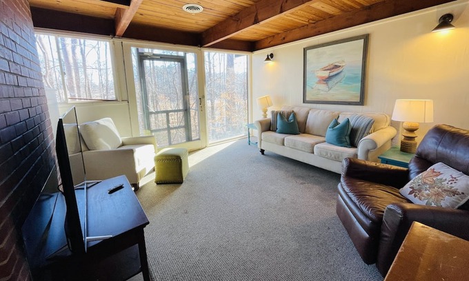 Escape to our cozy cottages nestled in Tanglewood Park's peaceful woods. Cottage #4 features 2 cozy bedrooms, 1 bathroom, a generous living room. Relax with stunning lake views and a variety of activities. Go fishing, boating, or swim in our seasonal pool. Enjoy golf or Softgolf, horseback rides, and BMX Racing. Don't forget your furry companion; we're pet-friendly! Let them roam freely at Tanglewoof, our dedicated dog park. Unwind in nature's beauty and make unforgettable memories.