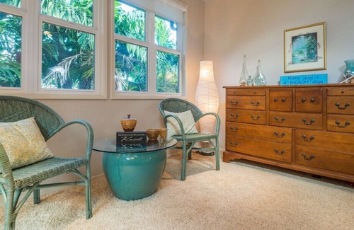 Located in the quiet and quaint village of Kaaawa on the Windward Coast, midway between Kaneohe and Laie (the start of the North Shore). You will be just 2 minutes from Kaaawa Beach Park or Kahana Bay State Park, 5 minutes from Kualoa Ranch and Chinaman's Hat Island and 15 minutes from the world famous Polynesian Cultural Center. You can also go hiking in the mountains behind Kaaawa, Crouching Lion and in Kahana Bay State Park. Experience Hawaiian living and customs at Kahana. See their Cultural Gardens and learn how Hawaiians survived and thrived from the Mountains to the Ocean Reef. Easy calm kayaking in Kahana Stream, one mile away, or in shallow ocean just across the street. No traffic...seriously...this can be a big issue along the North Shore.