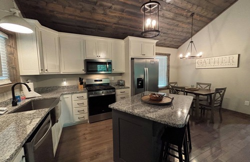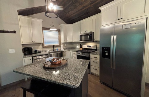 Escape to the peace and quiet of the Blue Ridge Mountains with this cozy two-bedroom vacation rental in beautiful Murphy, North Carolina. Perfect for a romantic getaway, a family adventure, or a weekend with friends, this fully furnished cabin offers a perfect blend of rustic charm and modern comfort. The master ensuite features a plush king-size bed, while the second bedroom offers bunk style bed offering a queen on the lower section and twin above. —ideal for kids or another couple. A full bathroom, central heating and air, Wi-Fi, and a washer/dryer provide all the conveniences of home.