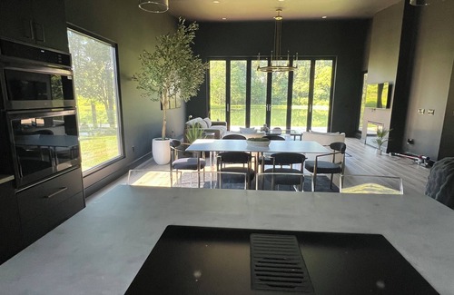 Escape to serenity at our Pondside Modern House, nestled beside a private 1-acre pond. Enjoy morning coffee as the mist rises from the pond, casting a line into the fully stocked water for a relaxing afternoon of catch-and-release fishing, or relax with a book as the water shimmers in the sun. Evenings are magical— under the stars with wine and laughter. Blending modern comfort with natural beauty, this peaceful retreat invites you to unwind, reconnect, and make unforgettable memories.