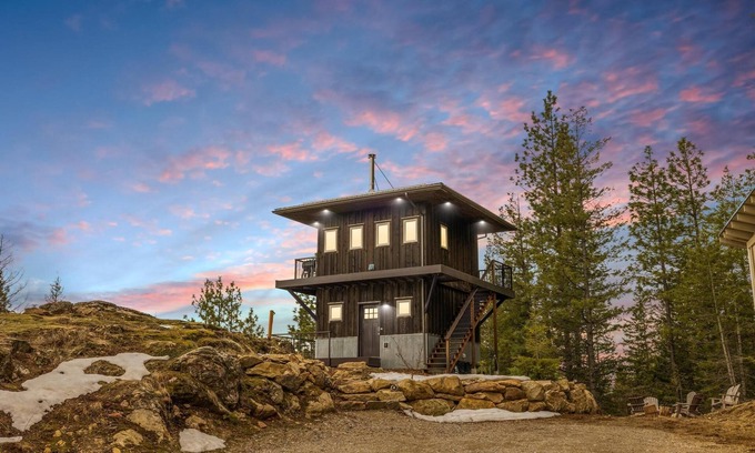 Escape to a breathtaking mountain retreat for remote getaways or romantic nights in! This stunning lookout tower, inspired by National Park architecture, sits atop a granite cliff over 60 feet high, offering unparalleled views of the Cabinet Mountains, Sandpoint, and Lake Pend Oreille. Tucked away off the main cutoff to Schweitzer Mountain, this awe-inspiring structure is a must-see for anyone seeking a one-of-a-kind experience.