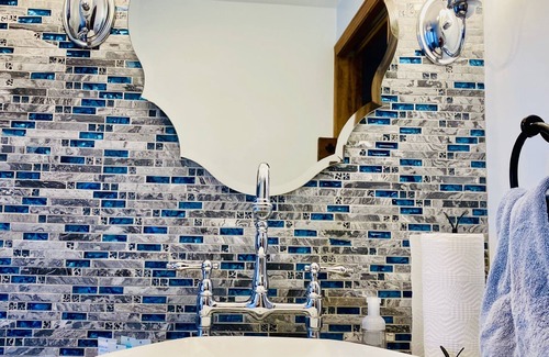 - Ranch style farmhouse lodging with upper and lower bedrooms, one and half bath