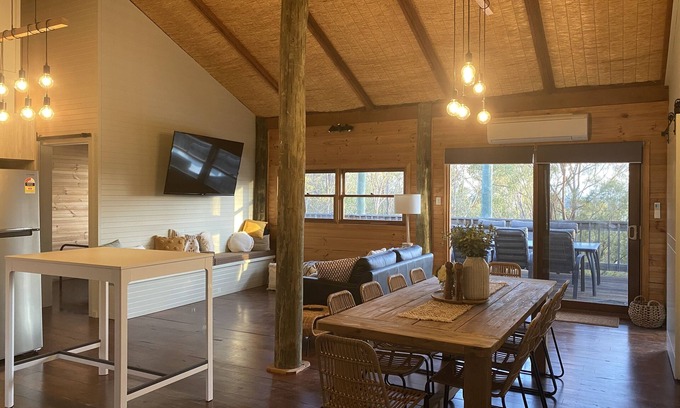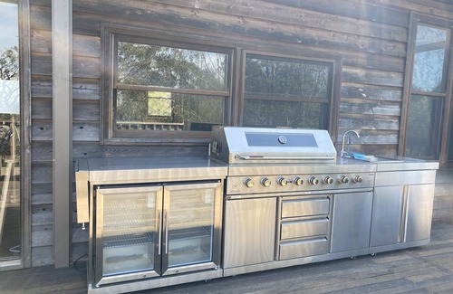Goanna Lodge is a private fully self-contained cabin with a huge deck, gourmet BBQ and stunning views which makes entertaining or a family get togethers on the deck a must.