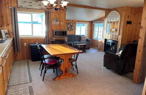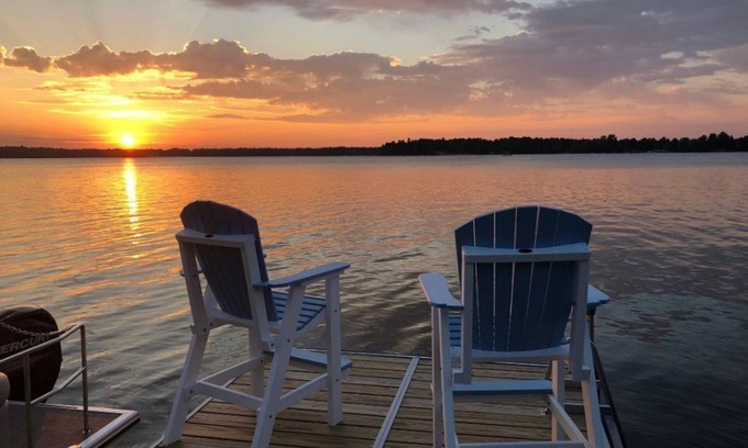 Stay in a charming cabin steps away from the lake. The cabin is decorated with warmth & charm. Sun bathe on the sandy beach, fish off the dock, or bring your boat. Sink a line and catch perch, bass, walleye, pike, or bluegill. Most stunning sunsets you will ever enjoy, sitting around your private bonfire pit or private cement patio.