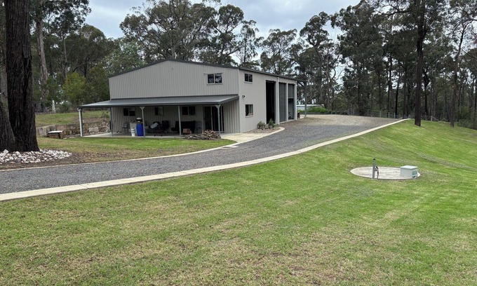 Escape to the secluded Boobook Barn. Imagine waking up to breathtaking rural vistas and the sounds of nature on this 7 acre, secluded property. The Boobook Barn is nestled in a hidden valley of lush bush, with an abundance of native wildlife at its doorstep. Enjoy the tranquility of this secluded retreat, yet still be within 5 minute drive to the local shops in Pambula, having the conveniences of Some of the most beautiful beaches on the South Coast. Other nearby attractions include the Pambula River Mouth 10 minute drive, Eden Killer Whale Museum, The township of Tathra and its historic wharf, Merimbula’s pristine beaches, including Short Point and Bar Beach as well as the many unique, local shops and restaurants the town has to offer. There are an endless amount of attractions within a close proximity, including mountain biking, swimming, fishing charters, whale watching tours, kayaking and bush walking. There is also ample room to park a boat to the rear of the property and a dog friendly yard. We are sure our guests will have a relaxing and enjoyable stay at our property in Bald Hills, NSW.
