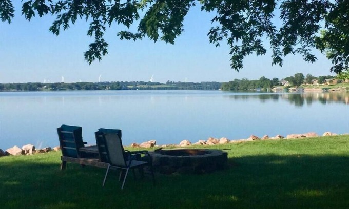 PEACEFUL LAKEFRONT COTTAGE: Come, relax and create your own memories at this comfortable 3-bedroom, 1 bath lake cottage on beautiful Lake Hendricks. This is a very peaceful setting on a private road with a large lot for family games and outdoor activities. Enjoy the 100 feet of shoreline, great for swimming, fishing, boating and water sports. Includes a dock and paddleboat. A large collection of books are available to read in the comfortable 3 season room. The sunroom also has a dining table for a family dinner of 6-8. Enjoy the beautiful sunsets over the nature pond on the other side of the cabin. Evenings can be enjoyed around the firepit or inside around the wood burning fireplace. A large paver patio and lounge furniture provided. A beautiful 9-hole golf course is within walking distance with a restaurant in the club house. This is a border lake, so a SD or MN fishing license is valid. Lake Hendricks is located on the west side of Hendricks, MN. The town of Hendricks includes several restaurants, a grocery store, bakery, hardware store, pharmacy, coffee corner, flower shop/boutique, library, churches, hospital and even a small movie theatre. There is a beautiful park in town along the lake with a swimming beach and campground. There are volleyball courts, disc golf and baseball diamonds all located by the park. There are three public boat launches on the lake and as well as a state park. Hendricks has a Fourth of July celebration, activities and parade that you won't want to miss. We are located 30 minutes from Brookings, SD where there are a large variety of activities, Children's Museum, restaurants, SDSU activities and more.